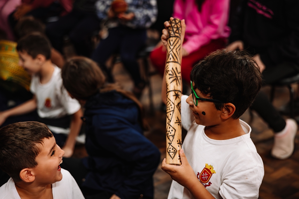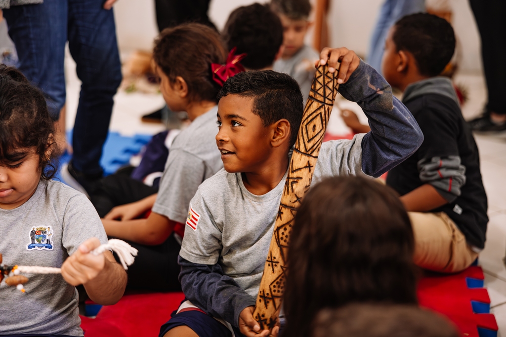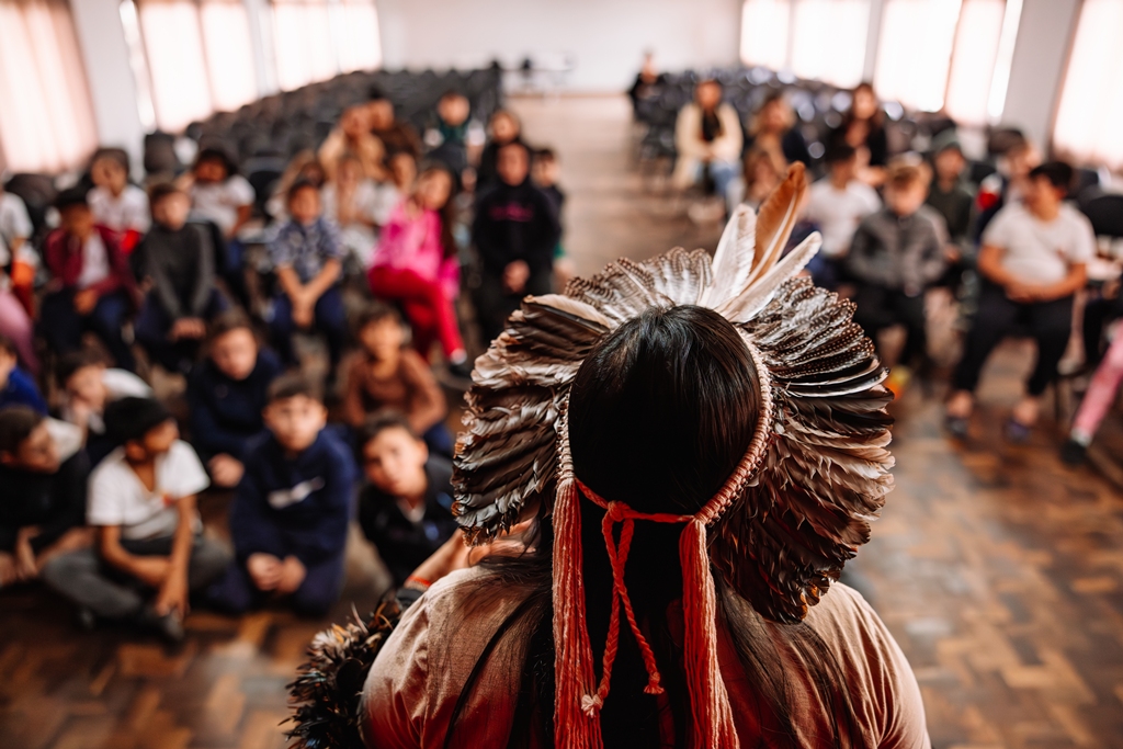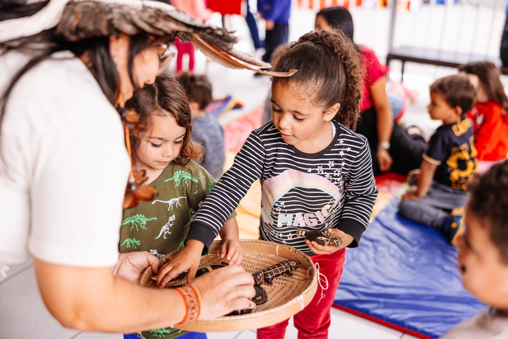 “Os projetos culturais desempenham um papel essencial no desenvolvimento das crianças. É através de vivências significativas, que os pequenos têm a oportunidade de entrar em contato com diferentes formas de expressão, de ampliar a visão de mundo e por meio disso construir valores, como, respeito à diversidade, a empatia e o pertencimento social”, afirma a diretora do CEI Professor Rudolf Hornburg, Cristiane Moro Schorr. “Durante as narrativas, percebia-se os olhares atentos das crianças, as expressões de surpresa e as falas espontâneas que revelavam o quanto elas estavam envolvidas com a experiência. A atividade ainda foi enriquecida com a apresentação de objetos e elementos da cultura indígena que encantaram as crianças”, complementa Cristiane. “Iniciativas como essa são fundamentais desde a primeira infância pois promovem uma educação inclusiva e plural, contribuindo para formação de sujeitos mais conscientes e abertos ao diálogo com diferentes formas de viver, pensar e sentir o mundo”, conclui a diretora.