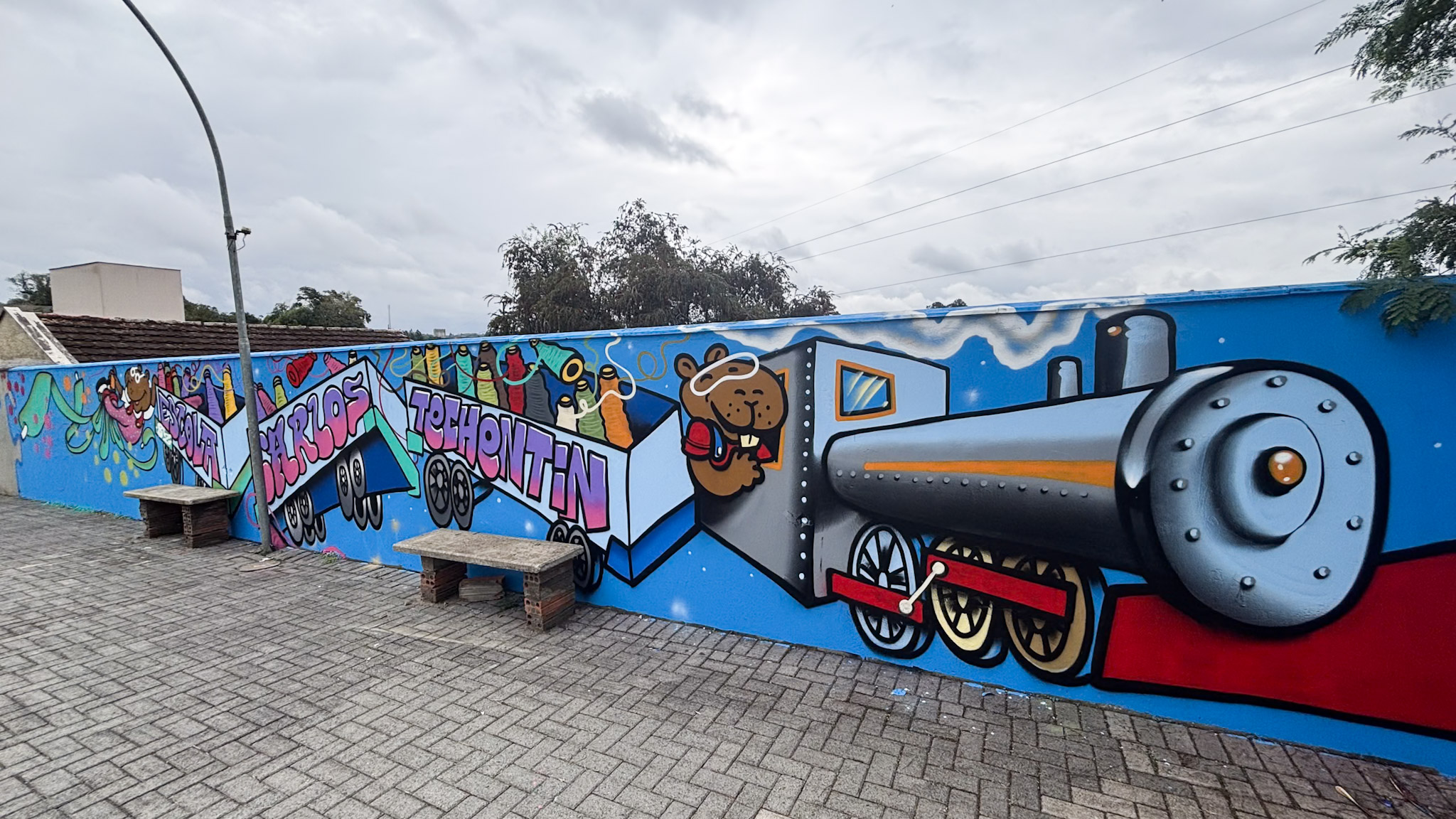 EBM Carlos Techentin – Projeto A História da Indústria Têxtil por meio do Grafite, em Blumenau – Foto: Rafaéla Dias