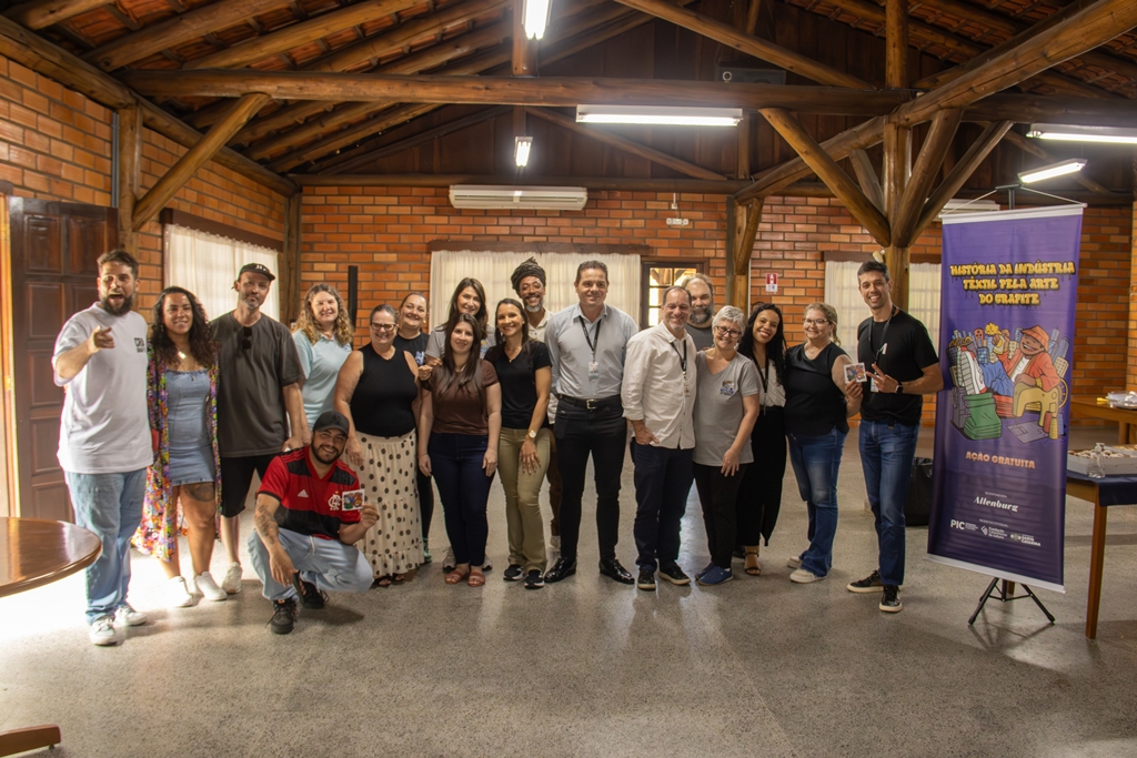 Arte urbana, indústria têxtil e celebração em destaque. Cerca de 150 alunos da rede pública de ensino estadual e municipal de Blumenau receberam o projeto A História da Indústria Têxtil por Meio do Grafite, do artista Quiko Nuts, nos meses de setembro e outubro deste ano. A celebração dos resultados do projeto ocorreu na quinta-feira (04/12) na Associação de Lazer dos Funcionários da Altenburg e contou com exibição de minidocumentário das ações aos participantes, presença da diretoria da instituição e apresentação da MC Stellar e Dj Gnomo.