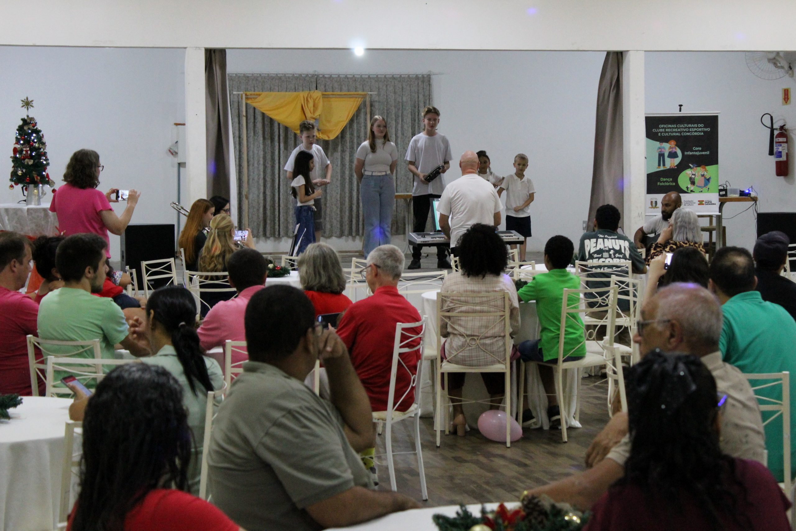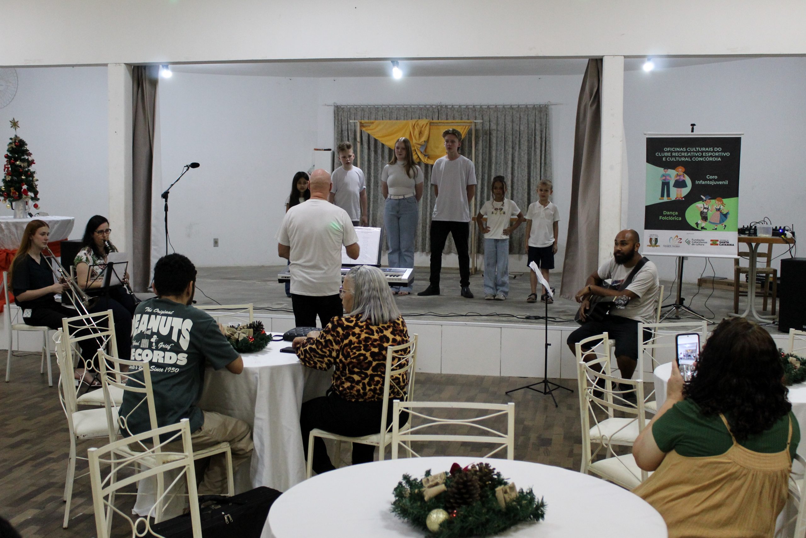 Canto coral em destaque. O Clube Recreativo Esportivo e Cultural Concórdia em Blumenau recebeu no dia 6 de dezembro cerca de 70 pessoas para prestigiar a mostra dos alunos do projeto Oficinas Culturais do Clube Concórdia, promovido pela instituição. No dia, foram apresentadas músicas em sua maioria natalinas, acompanhadas de músicos sob a regência do maestro Marciel Döring para familiares, amigos e associados do Clube.