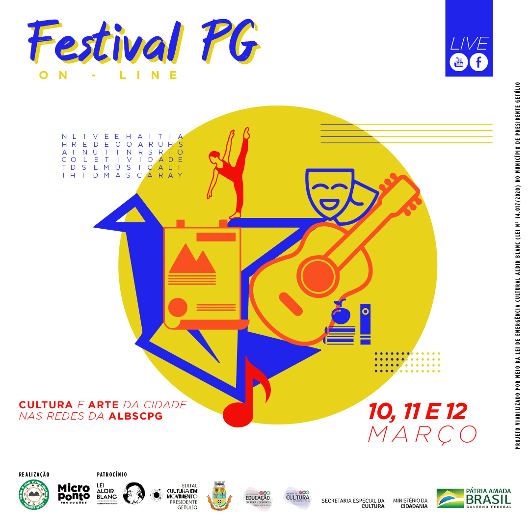 Jornalismo Cultural 1º Festival PG On-line ocorre nos dias 10, 11 e 12 de março pelas redes sociais da Academia de Letras do Brasil SC de Presidente Getúlio Por Redação1 de março de 2021