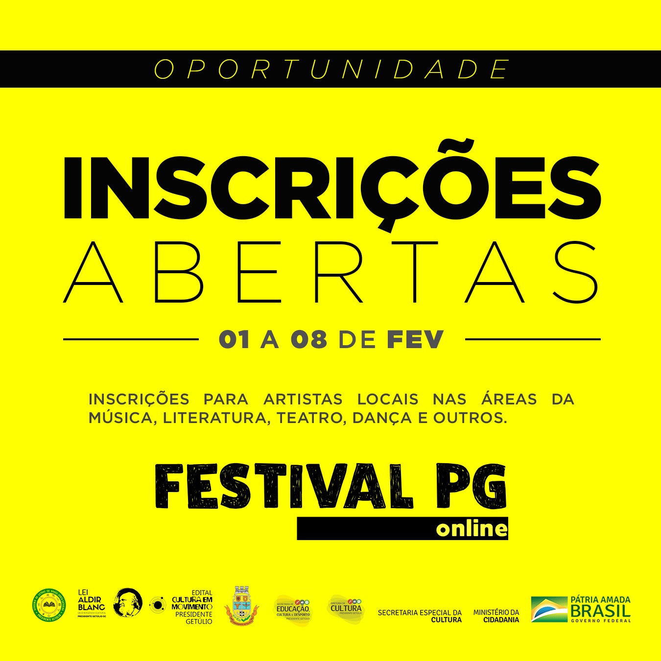 Jornalismo Cultural Estão abertas as inscrições para o 1º Festival PG On-line, em Presidente Getúlio Por Redação1 de fevereiro de 2021