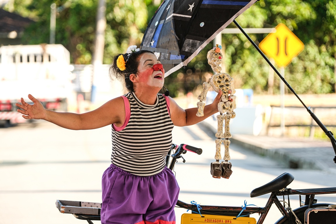 Riso, arte e as aventuras de uma palhaça que circula pelo Vale do Itajaí em sua bicicleta multifunções. Neste mês de fevereiro, o Projeto Volto Logo: Traquitanas e Traquinagens da Palhaça Cachaça, da artista Márcia Gonzaga, chega à cidade de Gaspar. As intervenções da palhaça em sua bicicleta ocorrem no dia 9 de fevereiro, segunda-feira, às 9h30 e às 14h30, na Praça Centro de Artes e Esportes Unificados – CEU Dra. Zilda Arns Neumann; e no dia 18 de fevereiro, quarta-feira, às 8h30 da manhã, na Casa das Oficinas Culturais Dagobert Gunter. Como contrapartida social, o projeto ainda traz à comunidade uma LIVE, no dia 13 de fevereiro, com o tema Palhaçaria Sobre Duas Rodas: O Que as Máquinas Têm a Dizer Sobre Isso?, um bate-papo com a artista e Luciano Wieser, do Grupo De Pernas Pro Ar (RS) sobre a relação entre máquina, palhaçaria e outras artes populares na rua. A conversa ocorre às 20h pelo canal do YouTube @palhacacachaca – Todas as ações são gratuitas com classificação indicativa LIVRE.