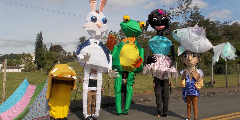Escolas públicas e instituições sociais de Blumenau, Gaspar e Guabiruba recebem de setembro a novembro espetáculo com bonecos de três metros de altura
